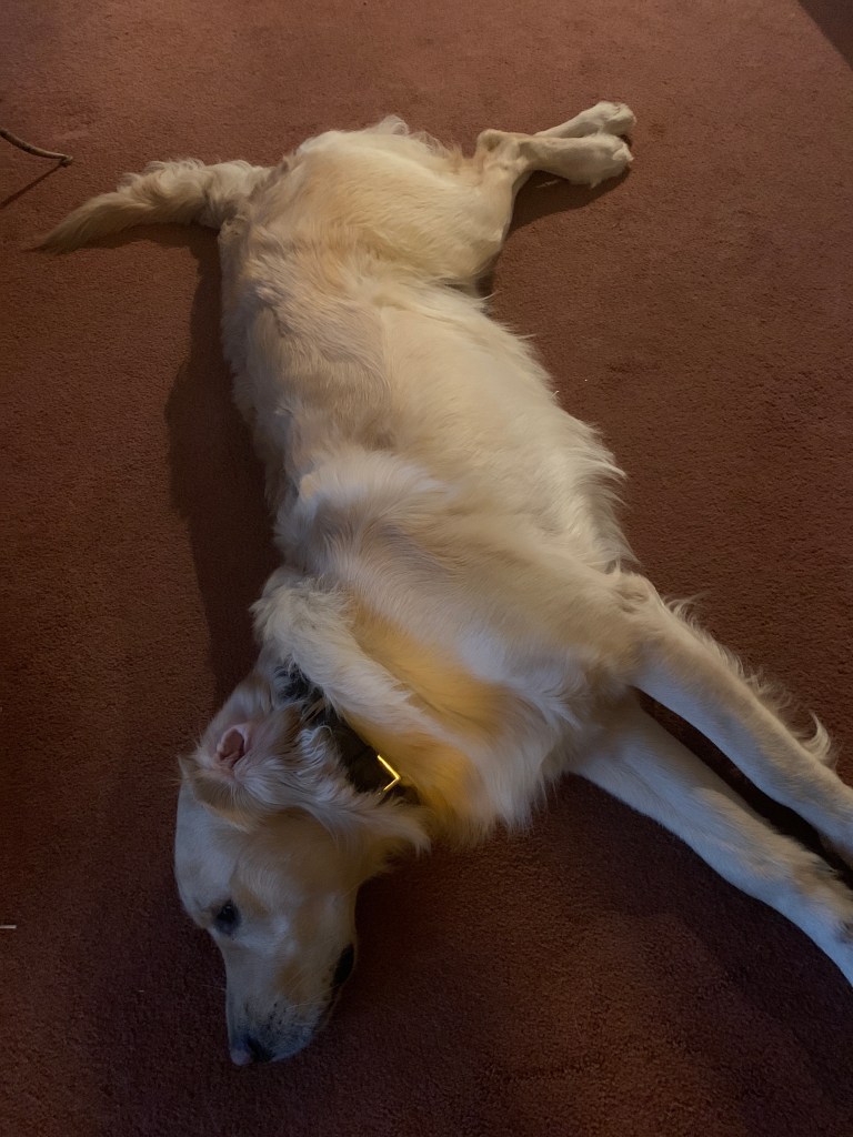 So, at last one of us has become the ‘responsible adult’ in a human/dog relationship around here and it has zero to do with our Golden One. Our blonde co-habitee has paired up with a well behaved (at the moment anyway), Golden Retriever that goes by the name of Ginger (of course it does!). Ginge is training to be a Guide Dog for the Blind and Blondie is sponsoring his journey for the next two years. How amazing that a Golden Retriever has the capacity to be someone’s eyes and safety blanket as well as trusted companion and we can’t succeed in getting our hairy hound to keep his paws firmly on the ground. It’s fair to say, I feel safer when the GO is asleep and content and I’m underneath my own safety blanket which I usually call a duvet! One of the pluses of the sponsorship arrangement is that it’s all done at a distance and Ginge doesn’t have to visit the homestead so will never know what japes he could be missing out on with the AG Massive ….phew….just as well. That would be 2 years of sponsorship wasted! On a serious note, yep, I sometimes do serious, hopefully one day Ginger will complete his training and change someone’s life for the better forever.