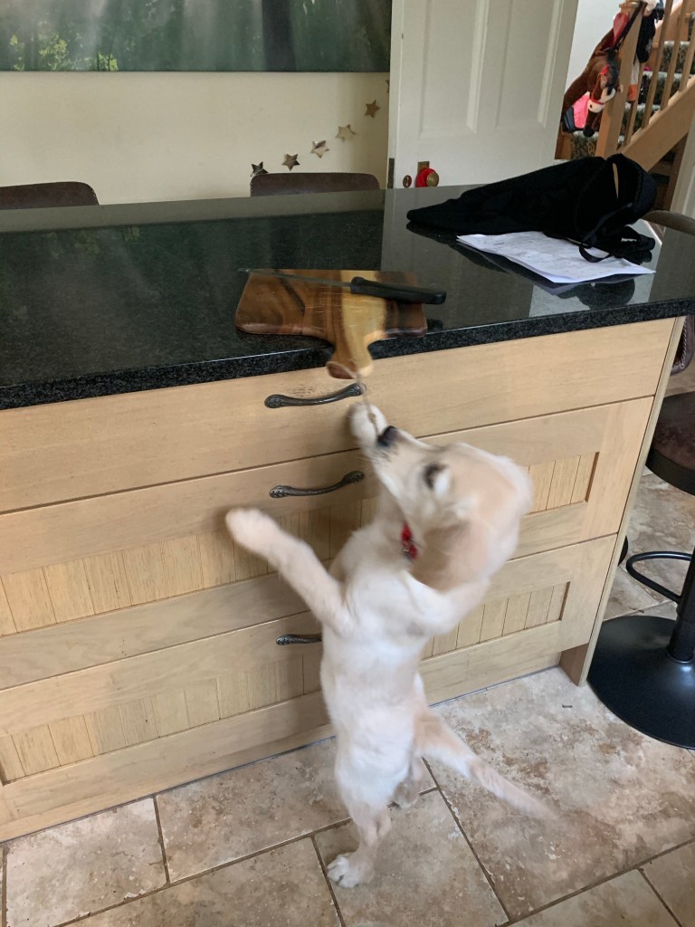 New year, new start. Really good for mental health as well as fitness and zest for living… apparently. Exceptionally early wake up calls, getting outdoors ASAP to take in the fresh air and biting wind, couple of laps of the perimeter , using mental agility, lots of bending and stretching and all for no subscription or monthly fee. There is unfortunately a rather hefty start up cost. Yep, acquiring The Golden H has all the hallmarks of military boot camp, and at this moment in time, without any of the benefits apart from the obvious; he makes a cute looking housemate. Having reached 12 weeks and 1 day, we’re waiting, albeit not particularly patiently for the Eureka moment when he suddenly realises, we call the shots and he does as he’s told if he wants food and lodgings on a permanent contract. You can tell it’s a long time since we’ve done any kind of hands-on parenting!